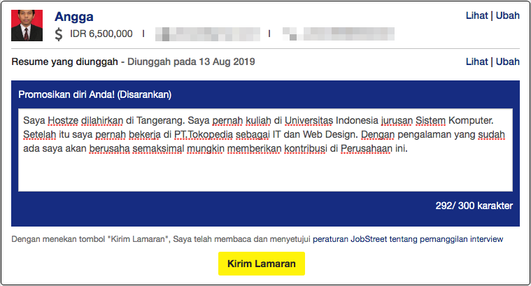 Contoh cv jobstreet. Cara mengisi nilai di jobstreet contoh promosikan diri anda di. Detail contoh promosi diri dalam 300 karakter koleksi nomer 3