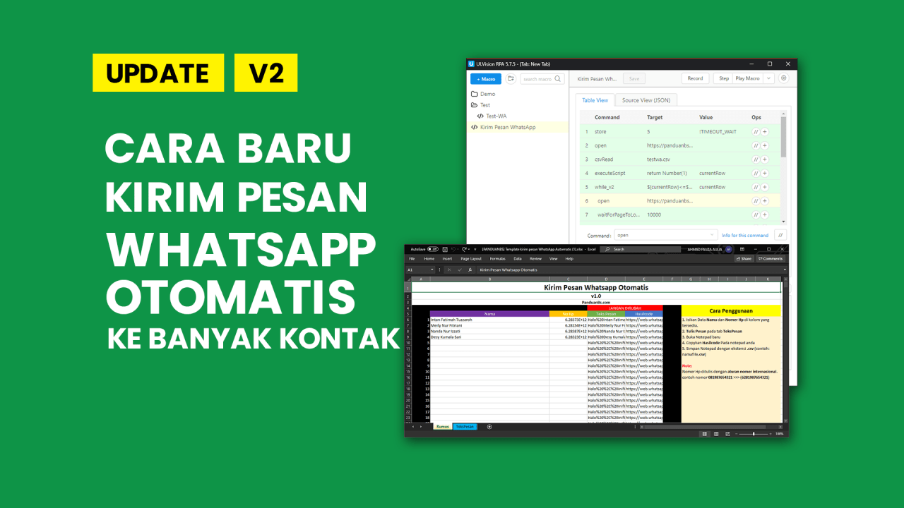 Alternatif lain yang bisa Anda gunakan untuk mengirim pesan WhatsApp kepada banyak nomor tanpa harus menyimpan nomor-nomor tersebut adalah dengan menggunakan UI Vision PanduanBS. Dengan menggunakan ekstensi ini, Anda dapat mengirim pesan WhatsApp dalam jumlah besar secara otomatis. Berikut adalah cara penggunaannya: