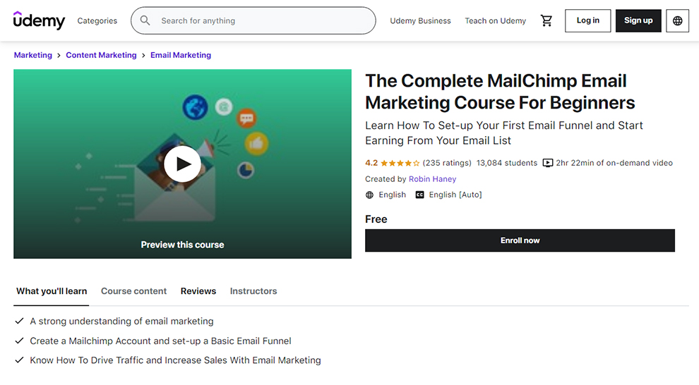 Bagi pemilik usaha kecil dan menengah, kursus ini adalah pilihan yang tepat. Anda akan belajar tentang strategi pemasaran email yang efektif yang dapat membantu Anda mencapai target audiens Anda. Kursus ini juga akan memberi Anda wawasan tentang teknik pengoptimalan email, taktik pemilihan subjek yang menarik, dan cara meningkatkan konversi melalui penggunaan email marketing.