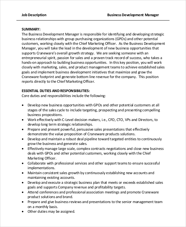 FREE 9+ Sample Business Development Job Description Templates In PDF