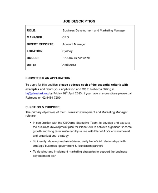 If you are searching about FREE 8+ Sample Business Manager Job Description Templates in PDF | MS Word you’ve visit to the right place. We have 5 Pictures about FREE 8+ Sample Business Manager Job Description Templates in PDF | MS Word like FREE 9+ Sample Business Development Job Description Templates in PDF, 23+ Marketing Job Descriptions – Free Sample, Example, Format and also 11+ Marketing Manager Job Description – Free Sample, Example, Format. Read more: