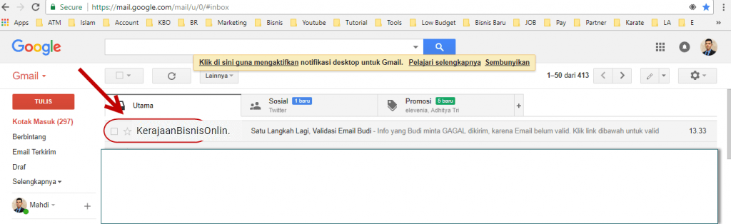 Langkah #1 : Tunggu 3-10 menit email dariĀ RBO.co.idĀ masuk ke folder Utama email AndaĀ