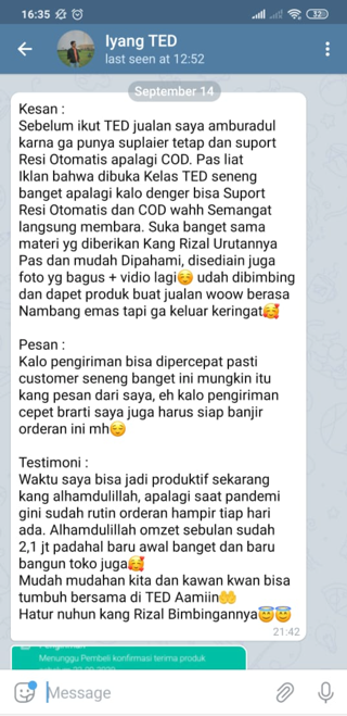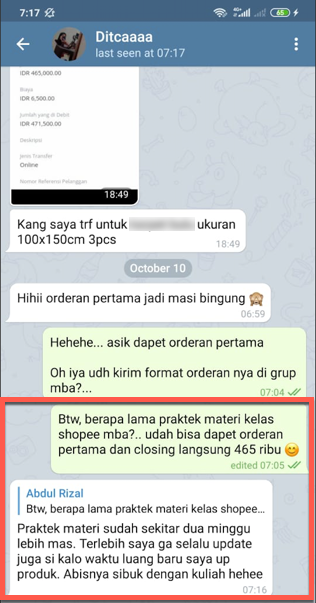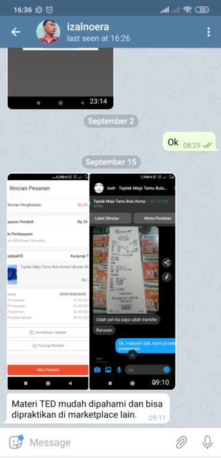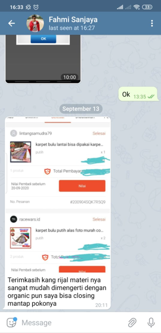 Anda bebas bertanya di grup khusus dan dibimbing praktek jualan sampai closing dapet orderan